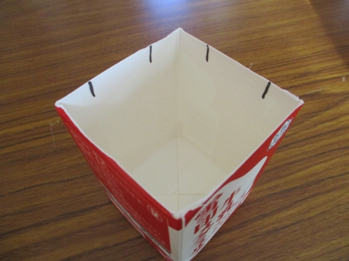 牛乳パックの4つの面に同じように切り込みを入れる。